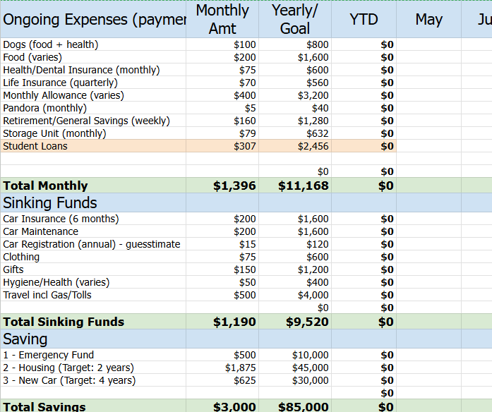 Because my travel will be sporadic, especially in the next 8 months, I have moved the gas / visiting a sinking bag. My guess is that in the first 3-4 months, it will be like ga where one tank of petrol lasts a month. Then come in September-November, I will have travel costs. So the dipping bag is logical, of course?